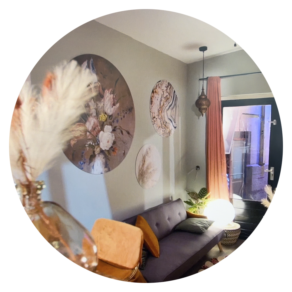 Besonders für ein Tiny House eignet sich die Wahl einer Collage mit mehreren Wandkreisen sehr gut. Ein Tiny House hat wenig Platz und es gibt oft viele rechte Winkel, kleine Flächen und es kann schnell „überfüllt“ wirken. Mit einer Collage können Sie verschiedene Werke ganz einfach und präzise an den verfügbaren Stellen an der Wand platzieren . So können Sie trotz des begrenzten Platzangebots dennoch ein Statement im Innenraum setzen . Darüber hinaus durchbrechen die runden Formen die geraden Linien des Raumes. Dadurch wird das Ganze weicher, verspielter und großzügiger.