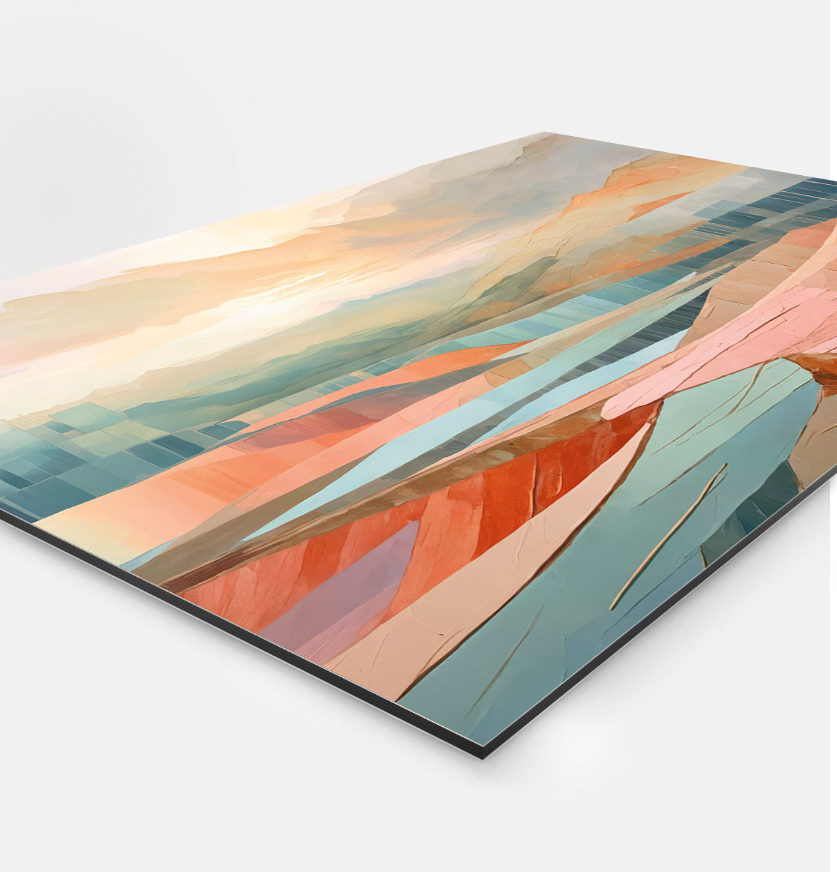 Darüber hinaus sind sie sogar UV- und wasserbeständig. Dadurch bleiben die Farben noch länger schön. Das hochwertige Dibond-Material besteht aus drei Schichten: zwei Aluminiumschichten und einem Kunststoffkern. Insgesamt ist das Material 3 mm dick. Eine spezielle Schicht auf der Vorderseite lässt die Farben besser leuchten und hält die intensiven Farben besser fest. Es ist eines der schönsten Wandmaterialien überhaupt.