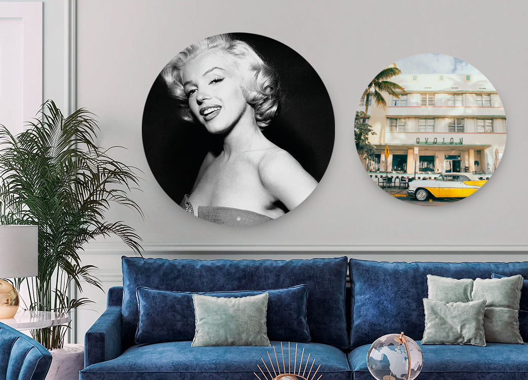 Geef stijl en vintage glamour aan je interieur met geweldige portret wanddecoratie en de mooiste jetset designs uit de HIP ORGNL® Beau Monde collectie. Droom weg bij het leven van de rich and famous uit de jaren 50 en 60. Ervaar de sfeer van favoriete high society vakantiebestemmingen, steden, auto's, cocktails en kuuroorden, maar dan in je eigen interieur. HIP ORGNL® is het toonaangevende merk in hoogwaardige wandcirkels en rechthoekige schilderijen. Alle wanddecoraties zijn gemaakt van premium, luxe en stevig materiaal. Je kan ze bestellen in kleur of zwartwit, rond of rechthoekig en in kleine of grote formaten. Kies je favoriet of maak een stijlvolle collage!