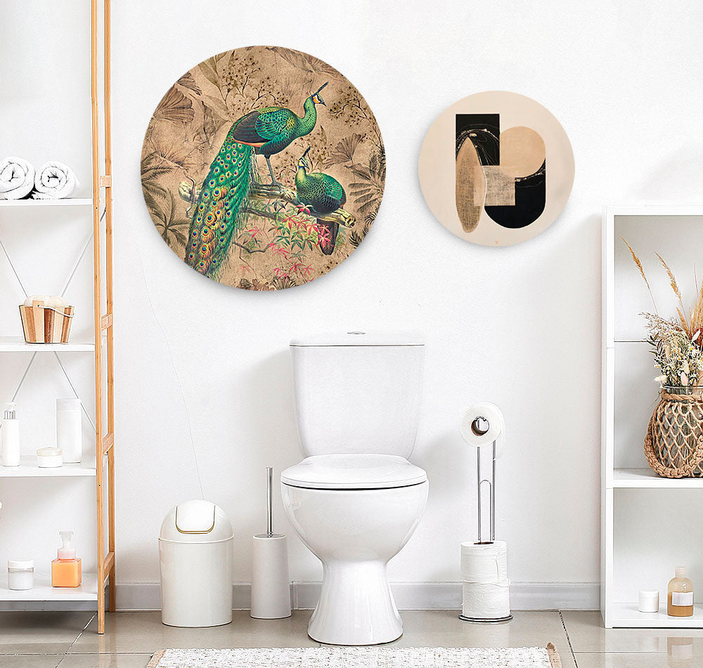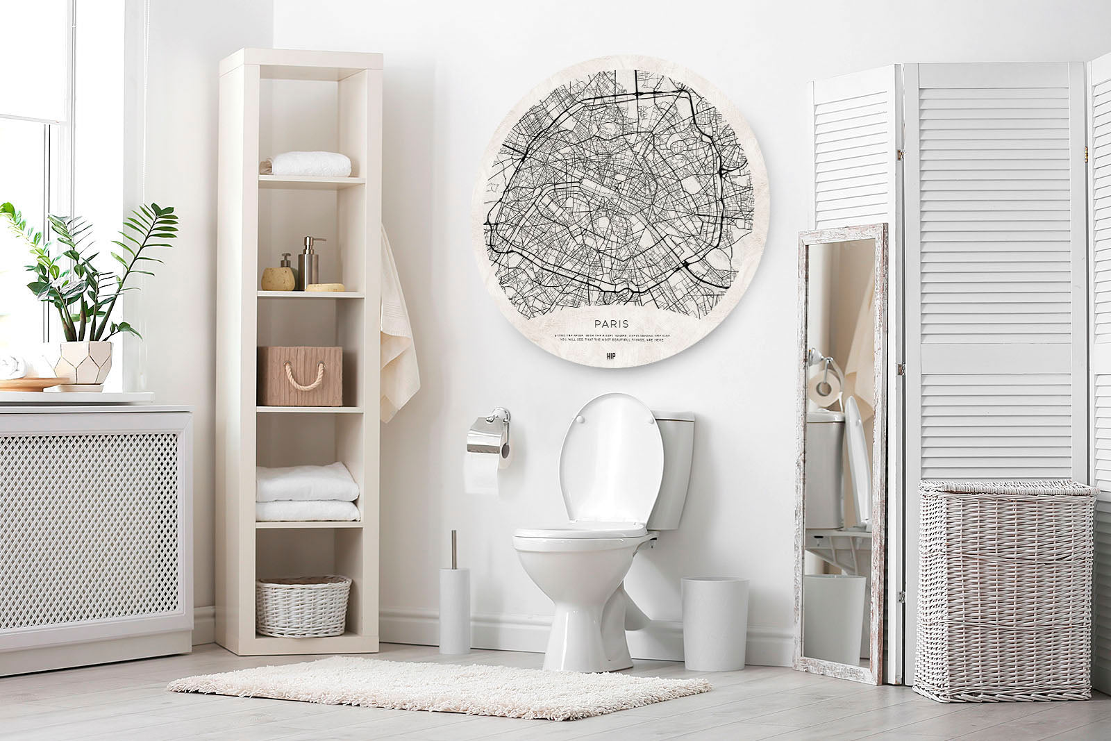 Omdat de wc nu eenmaal het kleinste kamertje is, is er meestal niet veel ruimte over voor decoraties aan de muur. Toch kan je allerlei kanten op. Hang bijvoorbeeld één groter kunstwerk op. Maar maak het niet te groot en te druk, want dan heeft de wc-bezoeker het gevoel dat het op hem of haar af komt. Een rustig schilderij uit bijvoorbeeld de HIP ORGNL® Fine Art collectie werkt daarom goed. Of kies meerdere kleine muurcirkels om een collage te creëren. Drie oude meesters naast elkaar bijvoorbeeld, of houtnerven, mineralen en zeeschelpen onder elkaar. Go for it!
