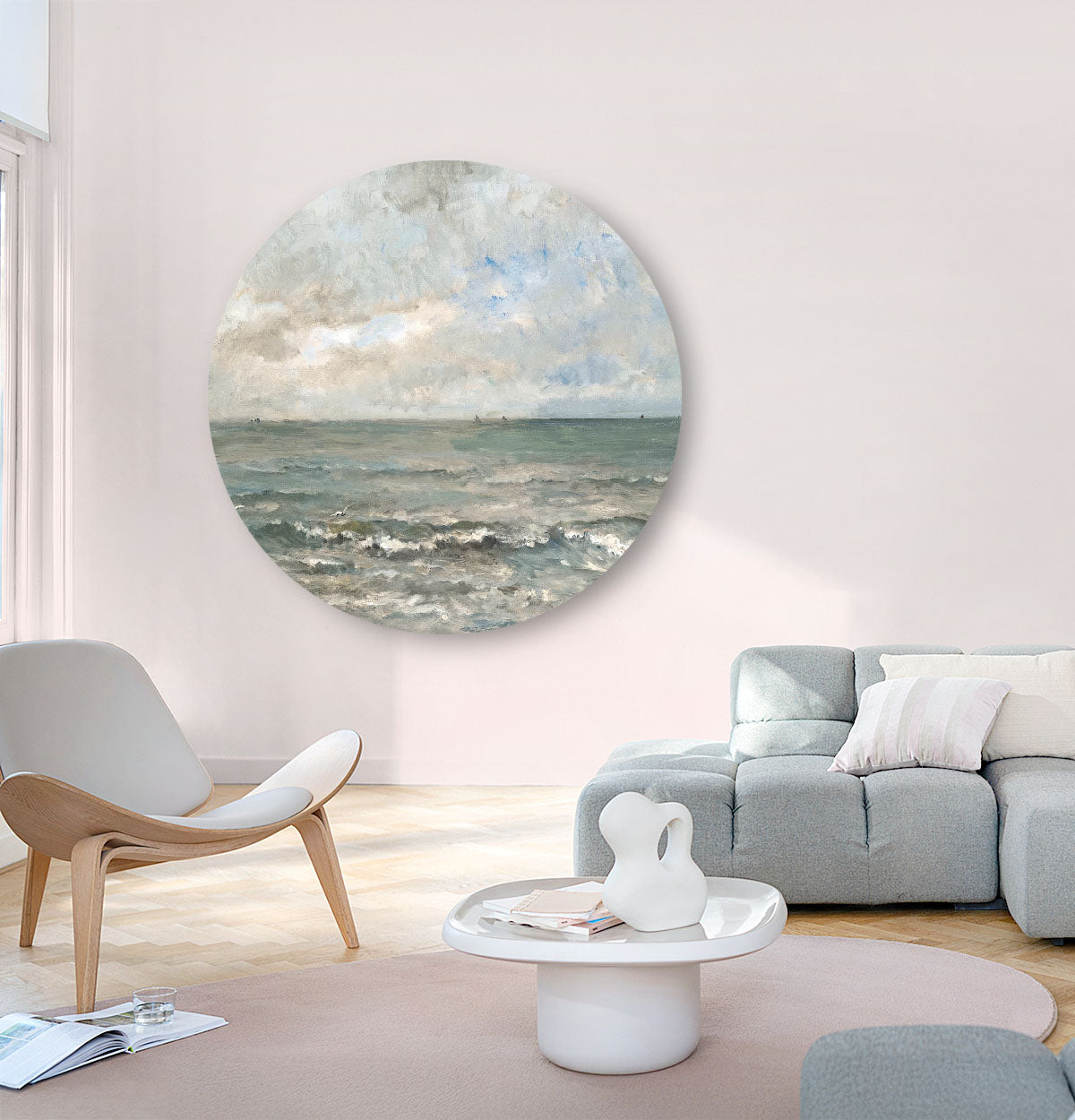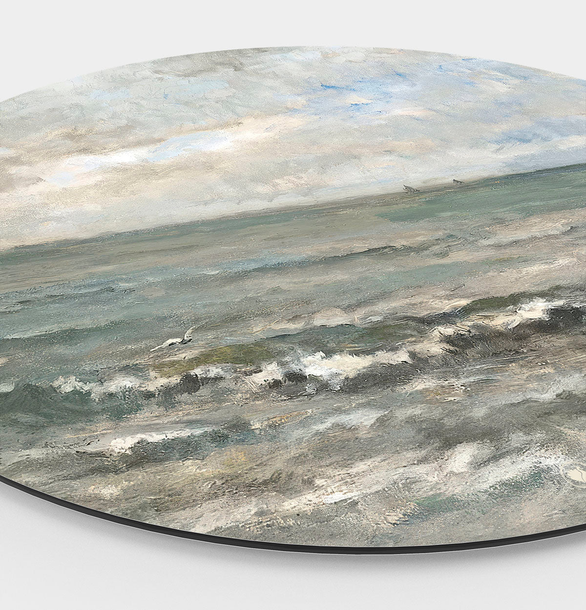 Charles-François Daubigny was een meester in het vastleggen van het weidse en serene landschap van de zee. Met de HIP ORGNL® Zeegezicht wandcirkel (in het Engels bekend als ‘Seascape’ en in het Frans als ‘Vue de mer’), kun je nu dit iconische schilderij als wandcirkel aan je eigen muur bewonderen. Onze hoogwaardige, toegepaste visuele vormgeving zorgt ervoor dat dit meesterwerk, ongeacht je interieurstijl, perfect tot zijn recht komt. Of je nu een liefhebber bent van een klassieke, moderne of rustieke woonstijl, in vrijwel elk eigentijdse styling is dit een prachtig meesterwerk aan de muur. In het originele schilderij, dat dateert uit de 19e eeuw, brengt Daubigny de rust van de horizon in balans met het levendige spel van licht op de golven. De zachte blauwe, grijze, witte en groene tinten, samen met het subtiele gebruik van de warme kleuren en schaduw, zorgen voor een harmonieuze en toch indrukwekkende weergave van de zee.