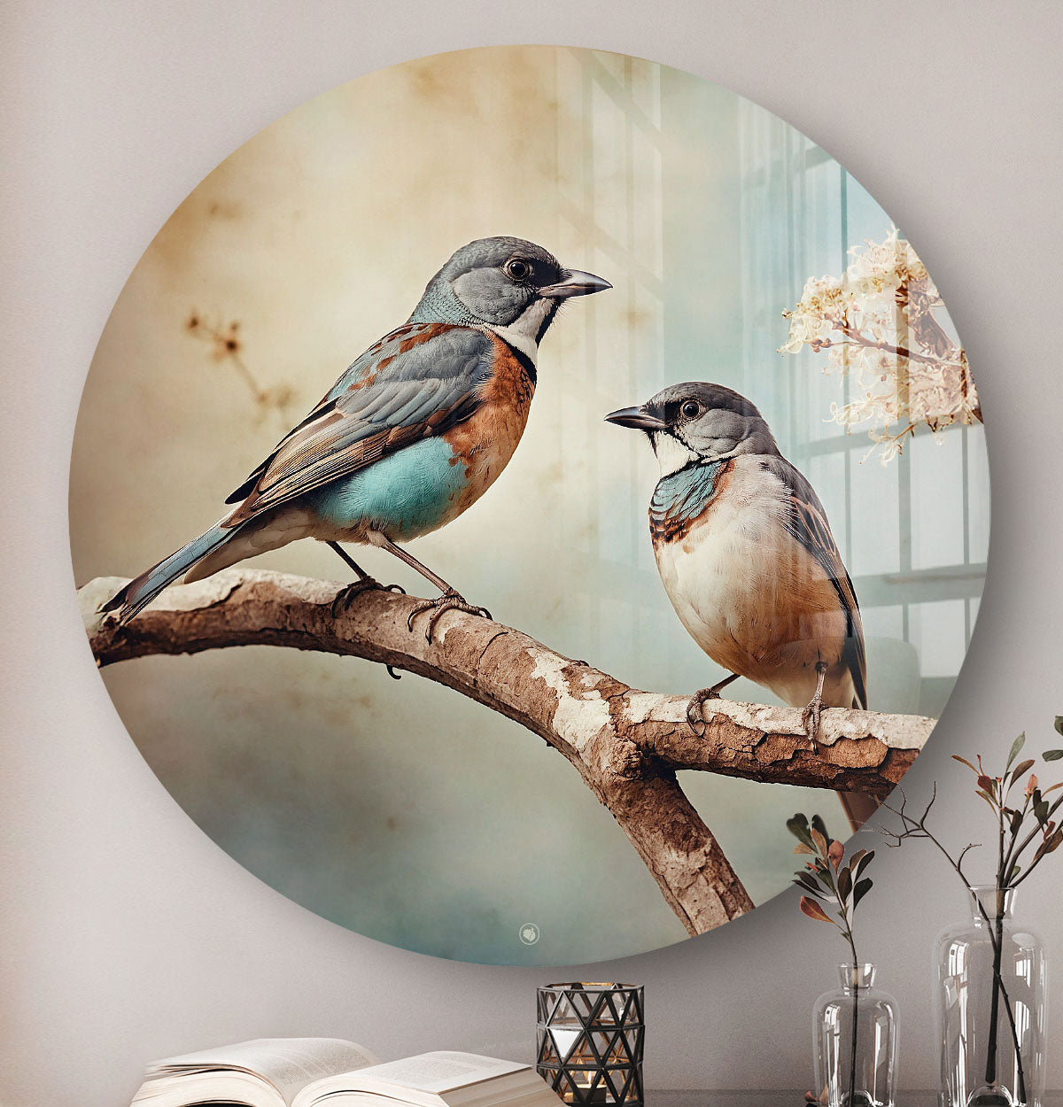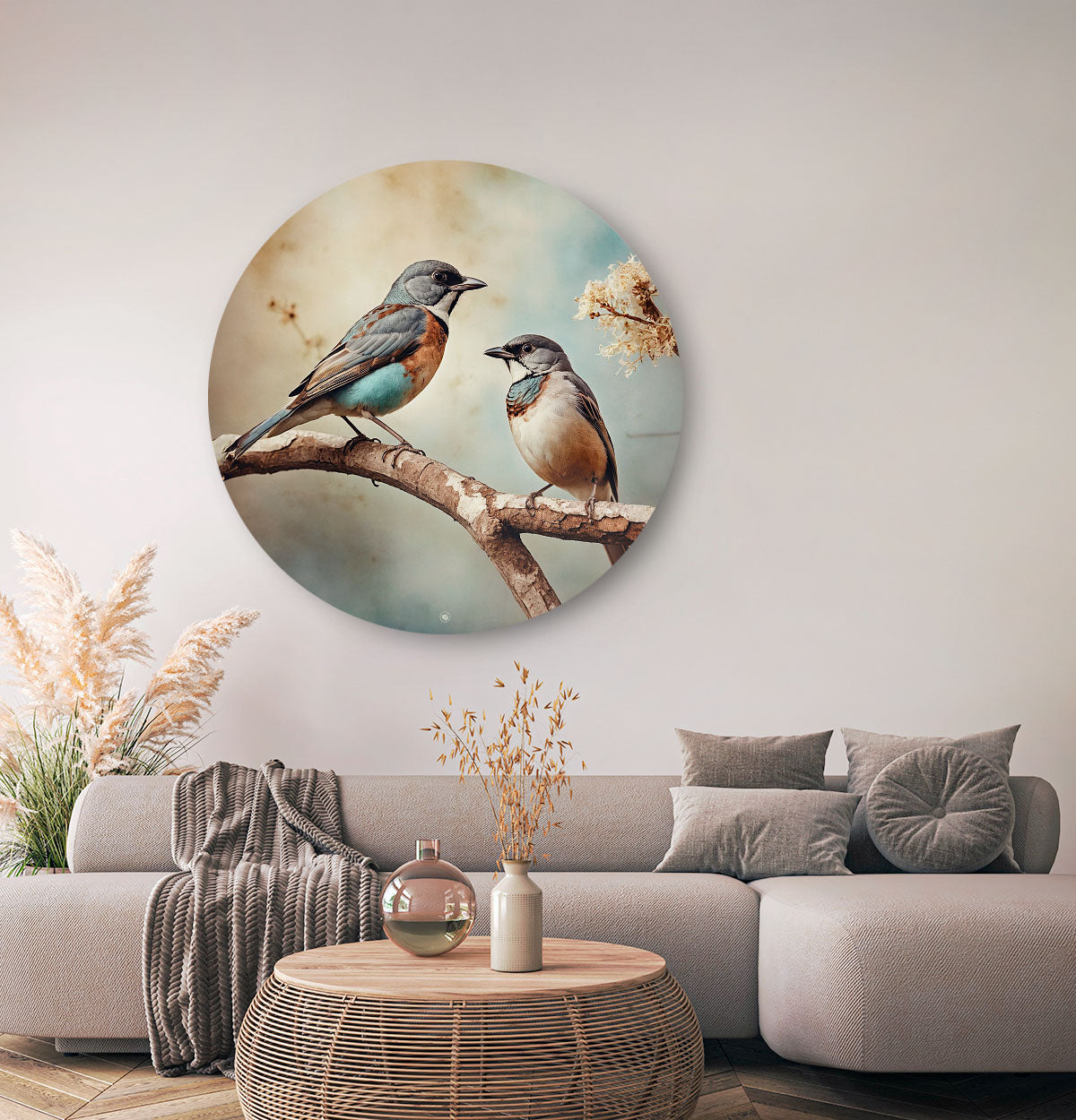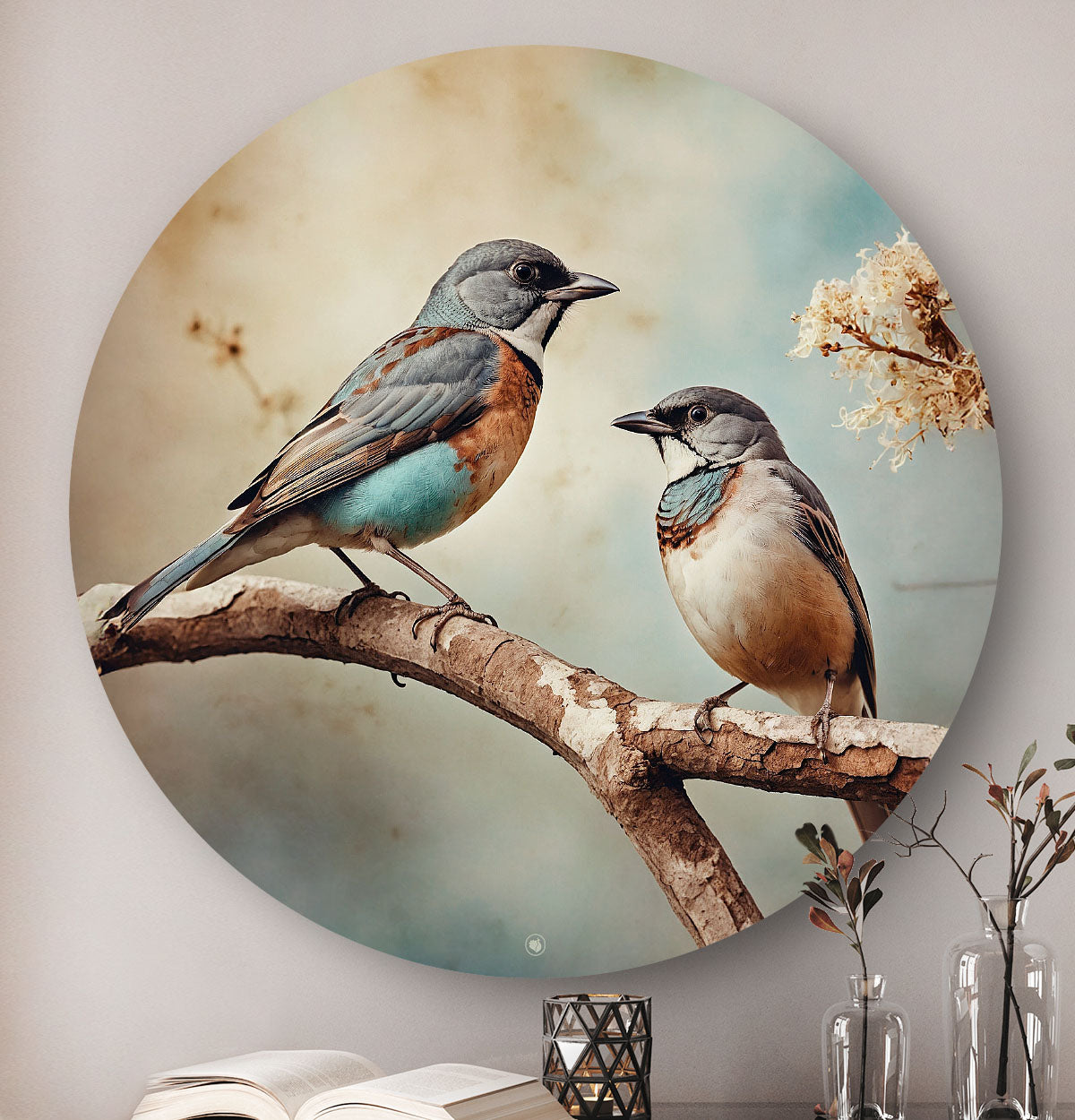 Laat je betoveren door de harmonie van vogels. De HIP ORGNL® Symphony of the Birds Round wandcirkel toont een samenspel van twee kleurrijke vogels in een artistieke omlijsting. De details in het kunstwerk zorgen voor een stijlvolle sfeer in elk interieur. Het straalt warmte, speelsheid en elegantie uit en is een ware blikvanger voor elke woonruimte. De wanddecoratie is vervaardigd van premium materiaal, afgewerkt in mat of hoogglans, en is een unieke toevoeging aan je woonkamer, hal of slaapkamer. Met dit schilderij heb je een vleugje natuur met een bijzonder tafereel dat nooit vervaagt!