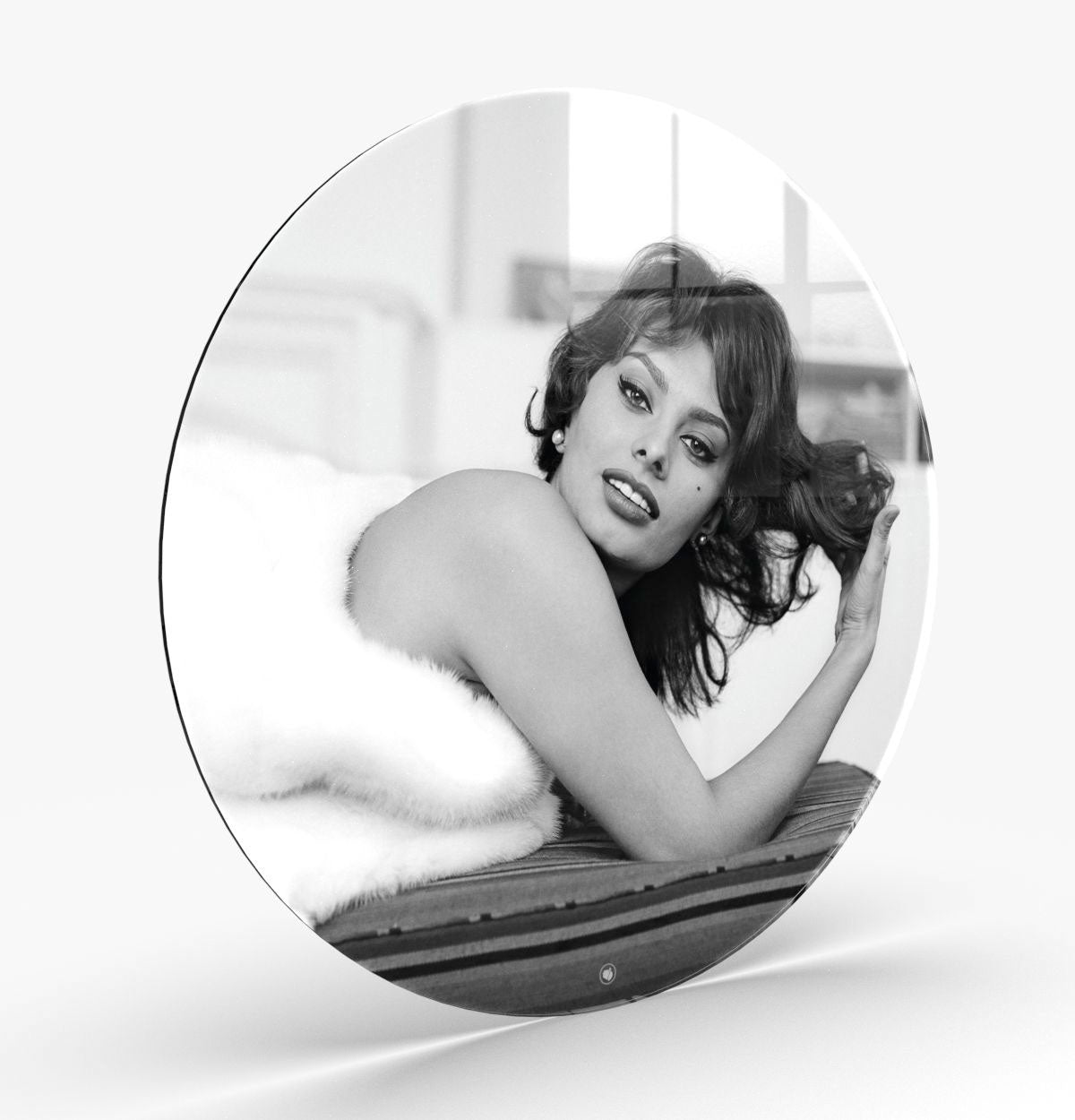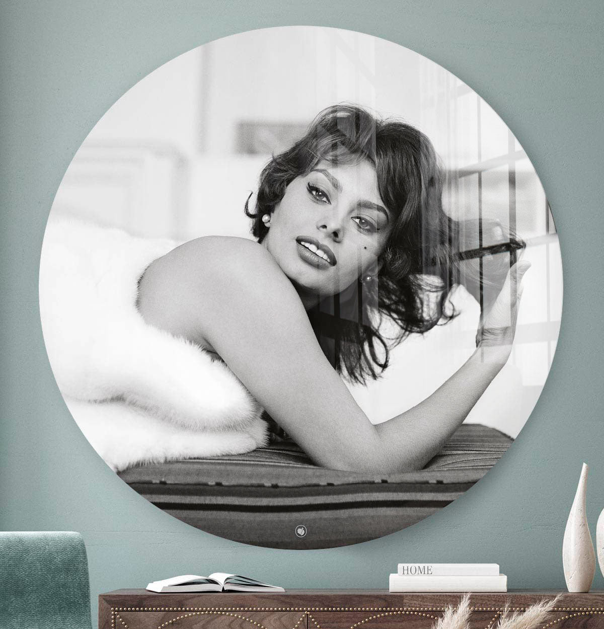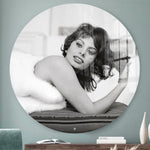 Zijaanzicht van een wandcirkel met een iconisch portret van Sophia Loren