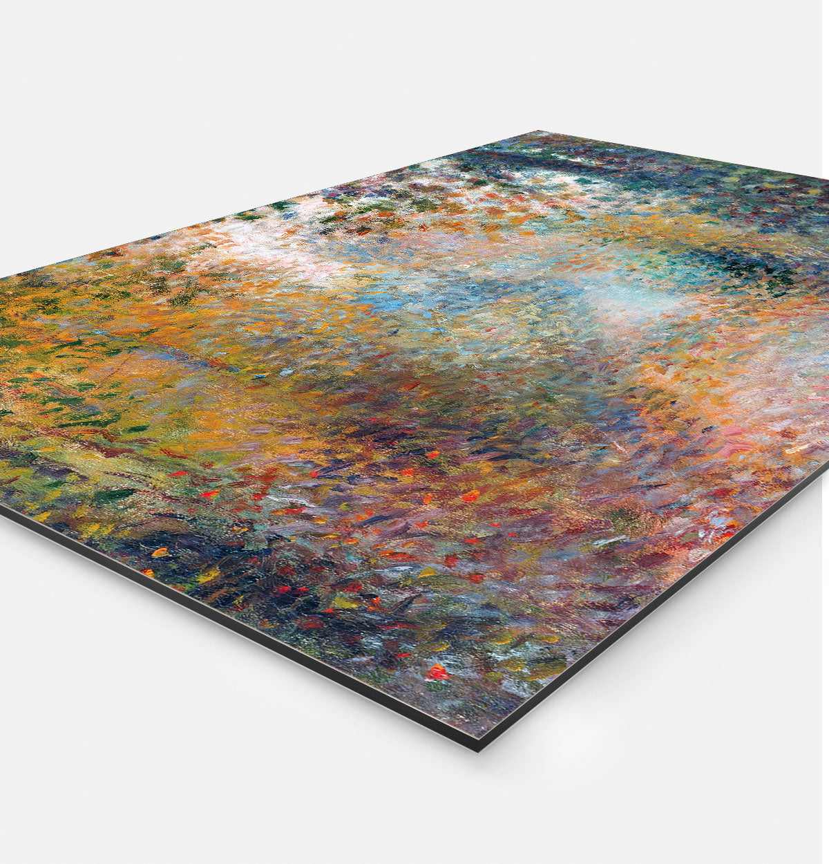 Daarnaast zijn ze zelfs UV- en waterbestendig. De kleuren blijven hierdoor nog langer mooi. Het premium dibond materiaal is opgebouwd uit drie lagen: twee lagen aluminium en een kunststof kern. In totaal is het materiaal 3mm dik. Door een speciale laag aan de voorzijde lichten de kleuren beter op en blijven de intense kleuren beter behouden. Het is bij uitstek één van de mooiste materialen voor aan de muur.